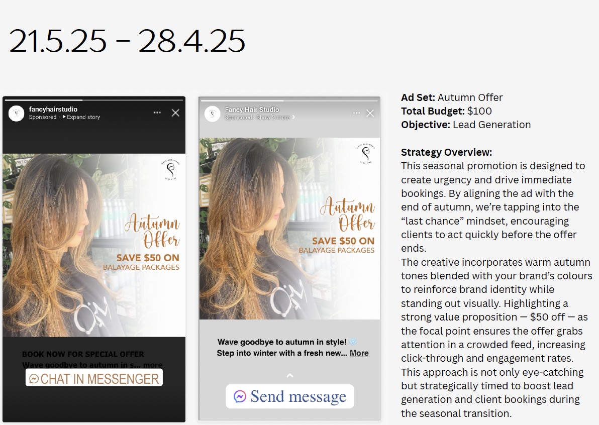 - 3 CUSTOM STORIES ON INSTAGRAM & FACEBOOK